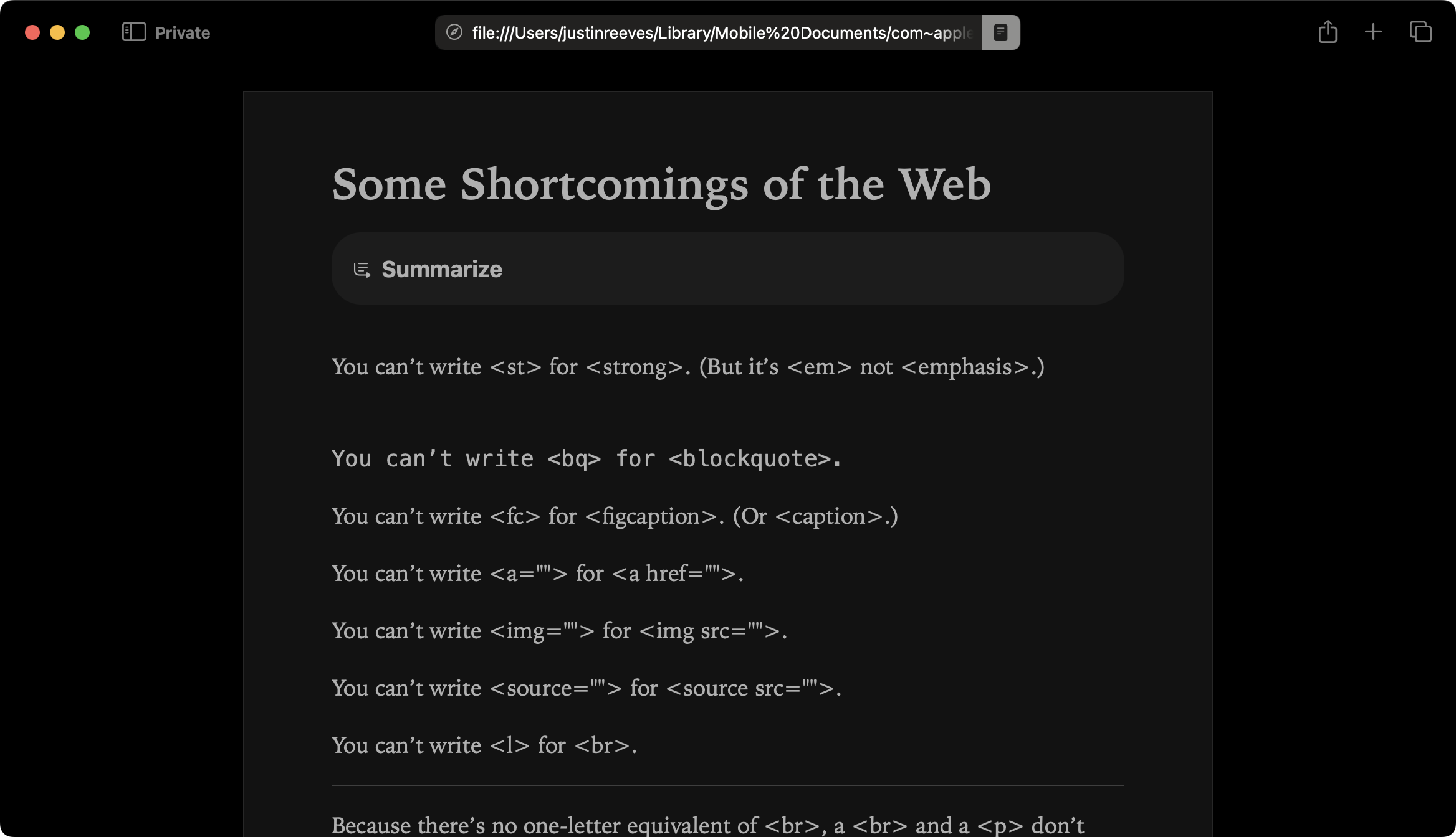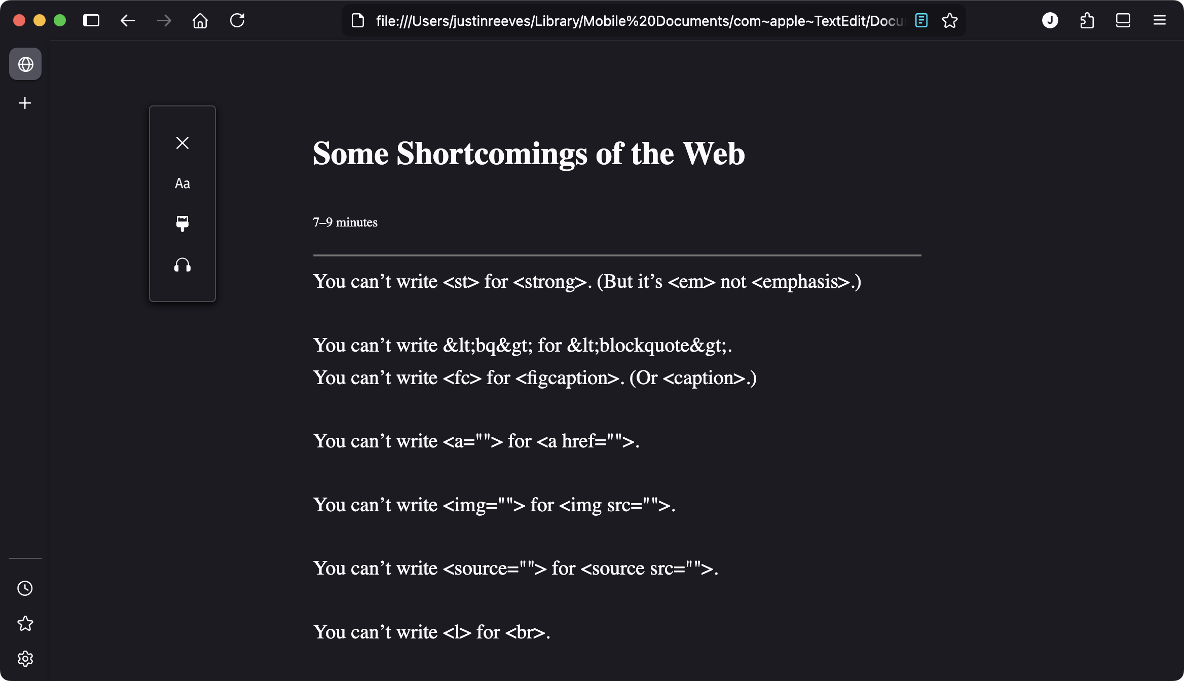 But since Safari’s Reader renders its defaults you still get the extra white space there.